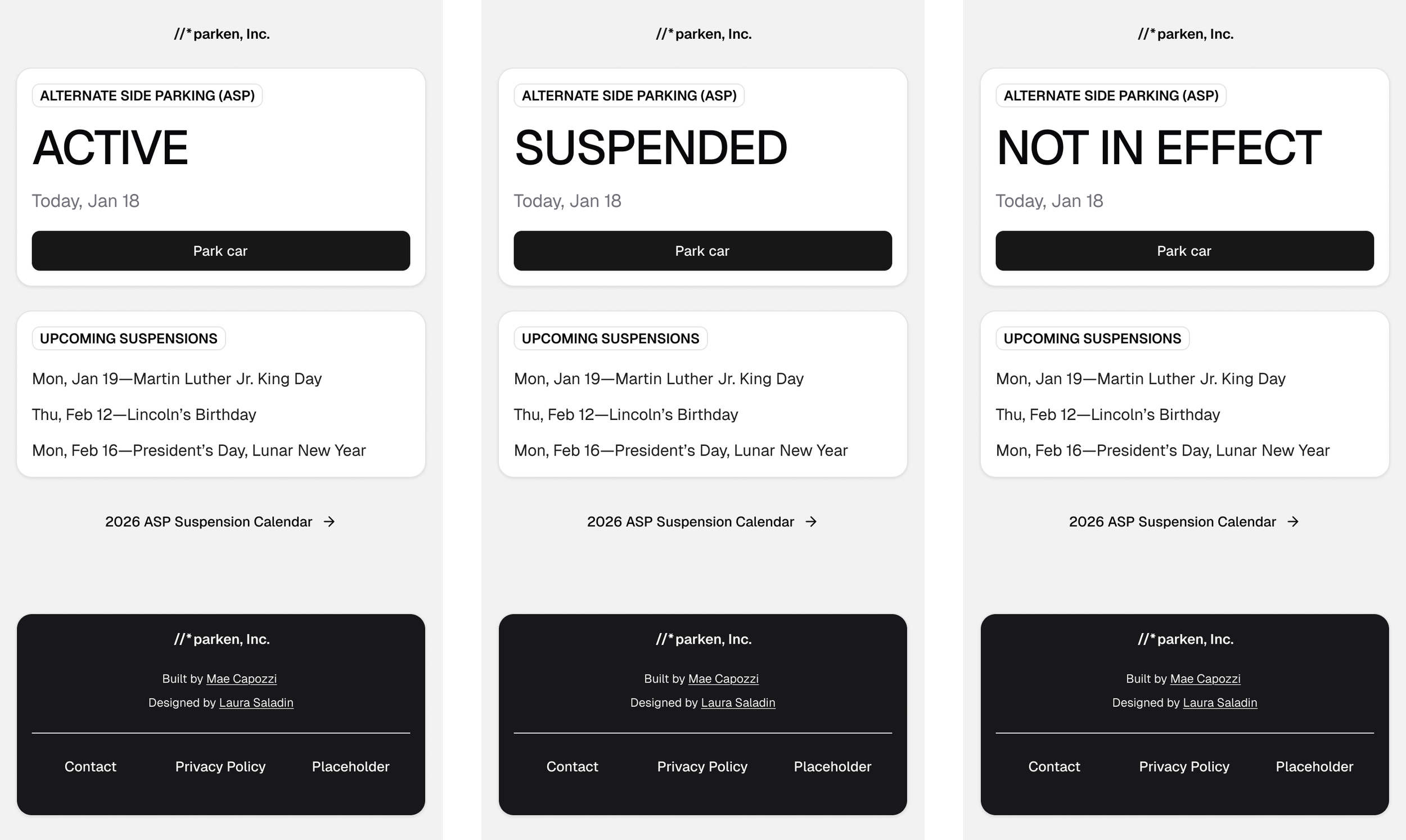 Parking utility web app that reminds users to move their car for Alternate Side Parking (ASP) street sweeping. Designed using Shadcn UI Library.